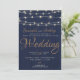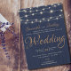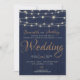 Capturar a essência do romance eterno com o nosso belo design de convite para casamento que casado perfeitamente a elegância de um fundo de efeito de madeira de marinho com o charme cativante de luzes bonito de cordas de retração.