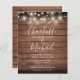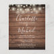 Um convite de casamento para na moda rusticidade com luzes bonito de cordas, nomes de estilo de assinatura e tipografia gráfica em um fundo de madeira rústica. Projetado por Thisnotme©
