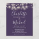 Com luzes bonito de cordas e seus nomes de estilo de foto e assinatura, este elegante convite de casamento roxo de orçamento pode ser personalizado com suas informações em letra chic. Projetado por Thisnotme©
