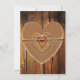 Estes convites de casamento rusticais têm um design de três corações de madeira empilhados uns sobre os outros e amarrados com um arco gêmeo. O fundo do convite é madeira rústica de celeiro velho. Note que este é um convite impresso em formato simples. O fio é apenas um design impresso. Este convite tem impressão a cores de cheio em ambos os lados, com a parte de trás do anúncio do casamento tendo o mesmo design cardíaco de madeira rústica. Este é um estilo de convite rústico exclusivo encontrado aqui no Zazzle. Descontos de preços ao solicitar mais de 50 convites. Esses convites rústicos são excelentes para casamentos no campo, casamentos no celeiro e casamentos rústicos.