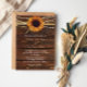 O Convite para casamento de Sunflower e Lights Wood apresenta um grande girassol com luzes de cordas. Perfeito para seu casamento rústico, celeiro ou ao ar livre