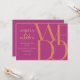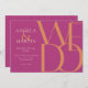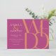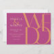 Os convites para casamento simples, mas ousados, de 7 x 5" contêm as palavras, "Nós fazemos", em letras laranja cantaloupe de tamanho excessivo, em um fundo magenta, com uma ampersand laranja e um texto de titular de lugar editável para o nome do casal de casamento, data, hora, local, endereço de local com a mensagem no fundo, "recepção a seguir".