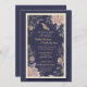 Apresentando o Convite à Design de Casamento de Mama, Rosa e Thistle — uma mistura de elegância de eterno e charme caprichoso. Apresentando um sofisticado fundo azul marinho profundo enquadrado por uma borda bege-claro, este convite é enfeitado com ilustrações intrincadas de rosas e palitos, complementadas por uma representação única de uma mariposa perto do centro superior. Os motivos florais criam um quadro romântico e natural, fazer esse design perfeito para casais que buscam um toque distinto e refinado para seu dia especial. Personalize a área central com seu texto personalizado para fazer este belo convite exclusivamente seu.