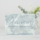 Este convite de casamento do mapa de aquarelas é perfeito para o casal que ama viagem. Sombras azuis e palavras "O amor é a maior aventura"