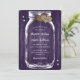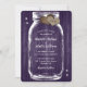 Convite de casamento roxo e russo com um jarro de pedras e corações de burlap em um fundo de madeira. Personalize facilmente este convite de casamento do Mason jar com seus detalhes de casamento.