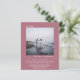 Estes belos convites são simples, modernos e minimalistas, assim como são favoráveis ao orçamento e baratos. Eles apresentam um rosa limpador poeirento contemporâneo ou um design cor-de-rosa-mauve com sua foto quadrada legada com seus nomes e as palavras: A Ser Quaidado. A versão e a informação padrão do casamento estão abaixo. As costas têm espaço para um URL do site para que os seus convidados possam obter todos os detalhes online. Simples e elegante, este convite é uma maneira maravilhosa de pedir aos seus amigos e família para partilharem na celebração do seu dia especial.