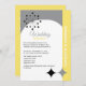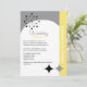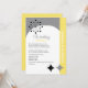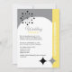 Simples mas clássico convite de casamento moderno inspirado em designs modernos de meio século; ele apresenta rajadas atômicas e formas em tons elegantes de amarelo, cinza, preto e branco.