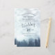 Este convite de casamento é rústico e bonito, enquanto ainda é amigável com orçamento. Ele apresenta um design alpino robusto com montanhas cobertas de pinheiros azuis envoltos em neblina ou neblina. A tipografia apresenta caligrafia de script e um layout sofisticado. Perfeito para uma cerimônia no exterior ou no quintal.