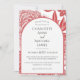 Linda coloração vermelha, um fundo elegante floral com lindas fontes com noivas e nomes de noivos e todos os locais de casamento para seus convidados. Perfeito para qualquer casamento.