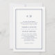 Elegante, simples e formal, nosso convite de casamento monograma de Eterno apresenta uma fronteira geométrica azul marinho que enquadra seus detalhes de casamento em letras clássicas, tocado por suas iniciais, monograma ou duograma. Cartões invertidos para faixas marinho e brancas. Os modelos de texto desta versão são configurados com texto para os pais da noiva hospedados, com os pais do noivo listados abaixo de seu nome.