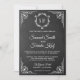 Incêndio aos seus convidados com este convite de casamento ao estilo vintage, com uma elegante fronteira de ornamentado branco e um belo monograma contra um fundo de quadro. Basta adicionar os detalhes do seu evento neste modelo fácil de usar para torná-lo um convite de tipo único.