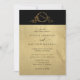 Um convite de casamento elegante, preto e dourado, com uma bela borda de cima, em preto, com um delicado monograma desenhado com noiva e as iniciais do noivo em película dourada. O resto do convite com uma bela impressão de folha de ouro mostrando seus detalhes de casamento em preto. Estilo limpo, mínimo, mas elegante e formal. De volta com a mesma borda preta com monograma e o resto em impressão de folha de ouro. Capacidade de mudar "juntamente com os seus pais" para "juntamente com as suas famílias", "juntamente com a alegria do excelente" ou "juntamente com o prazer do excelente", bem como a sua "celebração do casamento" para "a celebração do seu casamento" ou "renovação da celebração dos votos". Parte da nossa "Coleção de Casamentos de Monogramas Pretos e Dourados" com uma variedade de produtos coordenadores disponíveis. Visite a coleção inteira em: https://www.zazzle.com/collections/black_and_gold_monogram_wedding_collection-119092477004367833