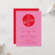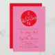 Convite para casamento moderno, minimalista, simples, contemporâneo vermelho vivo e rosa, com um monograma único de aves de casal desenhadas à mão, RSVP e código QR no verso.