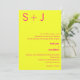 Este convite de casamento para o Modern Monogramas amarelo e rosa é totalmente personalizável. O monograma da noiva e do noivo é exibido com destaque na frente e no verso.