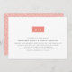 Leek, chic e moderno, esses convites de casamento ultra modernos monogramas apresentam suas iniciais em um elemento retangular em coral vibrante. Adicione seus detalhes de casamento em carvões, cinzas modernas, sans serif lettering. Convites invertem-se para um padrão-chave grego moderno opcional em coral e branco.