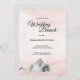 Este convite para o brunch de Montanha Pink Sunrise traz um toque clássico e único, mas simples e casual ao seu brunch de casamento. O nascer do sol e os raios solares de cor rosa, mauve, pêssego, pincel, coral e rosa poeirento, beijados com brilho de ouro estrelado em torno do texto da caligrafia estilizada, traz uma natureza pacífica e mínima às montanhas de cinzas pintadas pela aquarela para uma celebração de casamento na montanha.