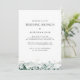 Este convite para o almoço do casamento, verde e dourado, é perfeito para o seu brunch elegante da floresta de boho. Com uma paisagem rústica esmeralda verde-aquática pontilhada com árvores, pássaros, e destaques da folha de ouro. É só o que você está procurando para completar o seu brunch de casamento de destino moderno.