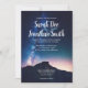 Um convite de casamento para o céu noturno, escuro, mas vívido. A informação é retratada como um branco vívido. O fundo é uma imagem olhando para cima, sobre as montanhas, para o céu noturno estrelado. Um texto simples e limpo é usado para leitura, com um script elegante usado para realçar os nomes. Com a personalização completa do texto, você pode personalizar este convite para se adequar ao seu grande dia, perfeitamente.