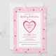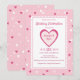 Este belo convite tem corações em tons de rosa e branco, em um fundo rosa. O texto pode ser personalizado para o seu casamento ou chá de panela. Seria excelente para um casamento temático de corações Dias de os namorados ou cor-de-rosa.