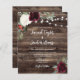 Este casamento no inverno de Natal Rustic Wood é perfeito para um elegante casamento de férias de celeiro. O design apresenta belas flores brancas e borboletas, de cor aquosa, com pinheiros, bagas sagradas e verde de eucalipto sobre fundo de madeira. Este é um esquema de cores perfeito para um casamento no inverno. Faça este convite seu, incluindo seus nomes e todos os detalhes do seu casamento. Para mais personalização, use a ferramenta design avançada para modificar este modelo.