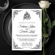 Amaze seus hóspedes com este convite de casamento ao estilo Islâmico, com uma elegante fronteira ornamentado negra e o 'Bismillah' na caligrafia Árabe contra um fundo branco. Basta adicionar os detalhes do seu evento neste modelo fácil de usar para torná-lo um convite de tipo único. Sacudir a placa para revelar um lindo padrão preto e branco na parte traseira da placa. Este convite é totalmente personalizável. Todos os textos são editáveis e a cor de fundo pode ser facilmente alterada para quais melhores ajustados você pode fazer.