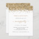 Um valor para o alternativo do ORÇAMENTO em tamanho menor de 4,5 x 5,6" de semirbrilho de 110 lbs, que é de espessura semelhante a um cartão postal (no entanto, não é adequado para uso como cartão postal). POR FAVOR, OBSERVE QUE HÁ UM convite por folha. Convite de casamento Dourado do Partido da Noite Glitter. A brilha falsa borda a parte superior de cada lado, e a "festa noturna" está em um roteiro de na moda com baloiços. Personalize facilmente o texto para seus próprios detalhes.