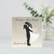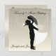 Um convite de casamento maravilhoso com uma noiva e uma silhueta de noivo sobre fundo dourado com estrelas no fundo. A design é simples, elegante e muito romântica.