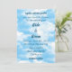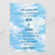 Convite para Casamento de Nuvens do Céu Azul desenhado por Nisha Prabhu. Totalmente personalizável. Personalize com seus detalhes. O Convite para Casamento de Nuvens do Céu Azul é uma escolha fantástica e sonhadora para casais que querem criar uma atmosfera romântica e etérea para a celebração do casamento. Este convite apresenta um fundo azul-sereno do céu com nuvens brancas lisas, evocando uma sensação de tranquilidade e paz. A paleta de cor azul clara cria um ambiente macio e calmante, perfeito para um casamento que visa criar um cenário relaxado e romântico. A design do convite inclui a tipografia elegante em azul, garantindo que o texto se destaca em segundo plano. As fontes utilizadas são lúdicas e românticas, somando-se ao sonho geral e ao sentimento encantador do convite. O Convite para Casamento de Nuvens do Céu Azul é perfeito para casais que querem infundir suas papelaria de casamento com um senso de maravilha e romance. Ela dá o tom para uma bela e etérea celebração do casamento, criando antecipação e entusiasmo entre os convidados para o dia mágico que vem.
