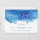 Barato personalizado estampou convites de casamento com um fundo de abstrato azul-d-água e tipografia de estilo moderna, escrita à mão. Personalize-o com seus nomes e detalhes do convite para casamento. Use as ferramentas de design para alterar as fontes e cores do texto ou adicionar texto e fotos adicionais para criar um único design de tipo. Um design de convite na moda e divertido, perfeito para um casamento de destino na praia!