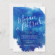 Barato personalizado estampou convites de casamento com um fundo de abstrato azul-d-água e tipografia de estilo moderna, escrita à mão. Personalize-o com seus nomes e detalhes do convite para casamento. Use as ferramentas de design para alterar as fontes e cores do texto ou adicionar texto e fotos adicionais para criar um único design de tipo. Um design de convite na moda e divertido, perfeito para um casamento de destino na praia!
