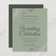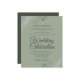 Estes convites para casamento baratos e amigáveis são a escolha perfeita para a aula, estilo e beleza num orçamento. O design é verde-sábio na frente e uma sombra de azeitona mais escura na parte de trás, com ornamentados de folha fina prateada e espirais nos cantos. A tipografia inclui a inscrição em rico para um estilo simples e elegante. Uma maneira maravilhosa de convidar seus amigos e família para compartilhar sua alegria em seu dia especial sem quebrar o banco.