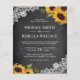 Incêndios para seus hóspedes com este elegante convite de casamento rústico com lindos girassóis e rendas com tipografia moderna em um fundo de madeira rústica. Basta adicionar os detalhes do seu evento neste modelo fácil de usar para torná-lo um convite de tipo único.