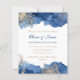 Um convite de casamento elegante e moderno. O fundo branco é decorado com tinta azul de marinho e cinzas de poeira e brilho dourados. Personalize adicionando os detalhes do evento de cheio.