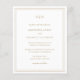 O estilo clássico é ouro falso, tudo em um convite de casamento de orçamento com um design simples e mínimo com seu monograma no topo e seus detalhes de evento cercados por uma dupla borda. As fontes se alternam entre um script elegante, um serif tradicional e fontes sans serif minimalistas. A parte traseira tem seus detalhes de convidado junto com um Código QR opcional (se preferir, você pode remover o Código QR na ferramenta de edição de design). Este convite é excelente para um casamento formal.