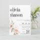 Este convite de casamento moderno para Pêssegos e Creme, desenhado com um orçamento em mente, incorpora maravilhosamente um RSVP e um Código QR. É simples, mas inegavelmente na moda.