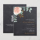 Fundo do quadro. Decorados com ouro-rosa e folhas de eucalipto cor-de-rosa-esbranquiçada, flores de rosa e cor-de-rosa-esbranquiçada, galhos, verde-verde e um cinzeiro de ouro falso. Personalize e adicione seus nomes e detalhes. Texto branco e ouro. Voltar: Adicione a url do site de casamento ao código QR para obter detalhes e/ou RSVP. 1 folha = 1 convite impresso de ponta a ponta.
