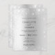 Um convite de casamento moderno, minimalista e formal. Um fundo com aspecto fino de prata decorado com falso brilho. Personalize e adicione seus nomes e detalhes. Letras pretas coloridas. Voltar: adicione seu link/url ao seu site de casamento para obter detalhes e/ou RSVP. 1 folha = 1 convite impresso de ponta a ponta.