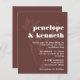 Ponha o tom para um casamento na moda e íntimo com este convite de casamento marrom moderno. Apresentando uma elegante ilustração botânica e uma tipografia ousada, essa design combina calor rústico com encanto contemporâneo. Perfeito para casamentos outono, festas de dança da terra e casais minimalistas que apreciam simplicidade refinada. Personalize com seus detalhes de casamento para criar um eterno e um convite sofisticado.