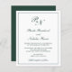O convite de casamento do estilo tradicional, com um design simples e clássico com seu monograma inicial e seus nomes em um dentro de caligrafia elegante de uma fronteira fina. Todos os elementos de design estão em verde da floresta sobre um fundo branco e podem ser alterados na ferramenta de edição de design. Esta design de classe é perfeita para um casamento formal.