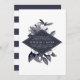 Moody e intrigante, com uma aparência moderna e mínima, nossos convites para casamento da Midnight Orchid apresentam uma simples paleta colorida de azul mais profundo e branco claro da meia-noite. Os detalhes do seu casamento são exibidos em letras brancas modernas em um conjunto de elementos em forma de diamante alongado sobre uma ilustração floral detalhada da vintage. Texto mínimo e amplo espaço em branco dão a este convite uma aparência única e inesquecível. Cartões invertidos a faixas horizontais largas em azul e branco da meia-noite.
