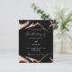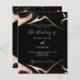 Um fundo negro. Decorado com veias rosa de mármore. Personalize e adicione seus nomes e detalhes da festa. Texto branco. 1 folha = 1 convite impresso de borda a borda.
