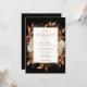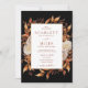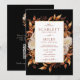 Este convite de casamento elegante e rústico apresenta cor d'água queimada manualmente, laranja queimada e folhas de terracota, creme e dahlias beige, e belas rosas de cor ferrugem perfeitas para um casamento de outono ou outono! O verso do convite tem um monograma, código QR e texto para personalização.