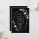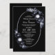 Um convite de casamento floral monocromático preto elegante. Os detalhes de localização da cerimônia e recepção estão incluídos neste convite informando que seus convidados estarão presentes em dois locais separados durante a ocasião festiva. Uma solicitação de RSVP também foi incluída na parte inferior deste convite para lembrar seus convidados de confirmar sua presença em sua ocasião especial.