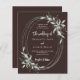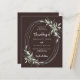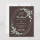 Um fundo castanho escuro. Decorado com verde e quadro oval. Personalize e adicione seus nomes e detalhes. 1 folha = 1 convite impresso de borda a borda.