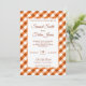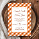 Incêndio aos seus convidados com este elegante convite de casamento, com a tipografia moderna contra um fundo de gingham branco e laranja. Basta adicionar os detalhes do seu evento neste modelo fácil de usar para torná-lo um convite de tipo único.