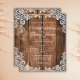 Este convite para casamento de madeira rústica e renda de barato é uma forma encantadora e romântica de convidar convidados para o seu dia especial. Ele apresenta um fundo de madeira com sutil textura de grãos, delicados sotaques de rendas, fazer perfeito para um casamento no país ou para casais querendo uma sensação quente e íntima. Use as ferramentas de design para atualizar o texto e a fonte.