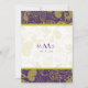 Um lindo padrão de salada em goldes suaves em um rico fundo roxo. Um motivo chique e baleeiro perfeito para casamentos, aniversários e outras ocasiões. Você pode personalizá-lo para o que precisar para o seu evento. As placas RSVP e outros produtos estão disponíveis no meu compro. Outros esquemas de cores estão disponíveis a pedido.