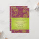 Designs verdes paisley sobrescrevem um fundo roxo ametista. O texto personalizado do casamento fica em um painel de gradiente de verde limão. Excelente para um casamento temático do sudeste asiático ou quando você quer fazer uma declaração corajosa e corajosa. Disponível em cores alternativas com produtos correspondentes.
