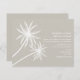 Um convite de casamento com uma ilustração de duas palmeiras brancas à esquerda. Personalize o texto à direita com detalhes da sua ocasião.