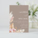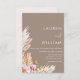 Um convite de casamento de erva boho pampas minimalista. Este convite para o casamento apresenta tons ricos de marrom e ouro com um design de grama floral cor-de-rosa. O texto pode ser personalizado para compartilhar todos os detalhes do dia do seu casamento.